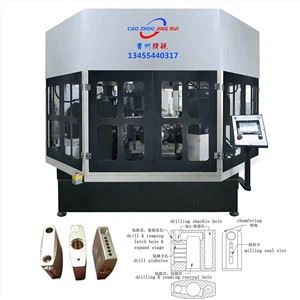 Esta máquina de bloqueo es un equipo combinado para procesar una pequeña carcasa de candado. Puede procesar todos los agujeros de la carcasa de la cerradura en una sola vez. El posicionamiento único asegura la precisión del mecanizado y la ubicación del sitio del agujero.
